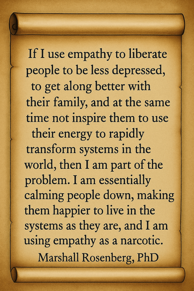 “Nonviolent Communication is an awareness discipline masquerading as a communication process.”