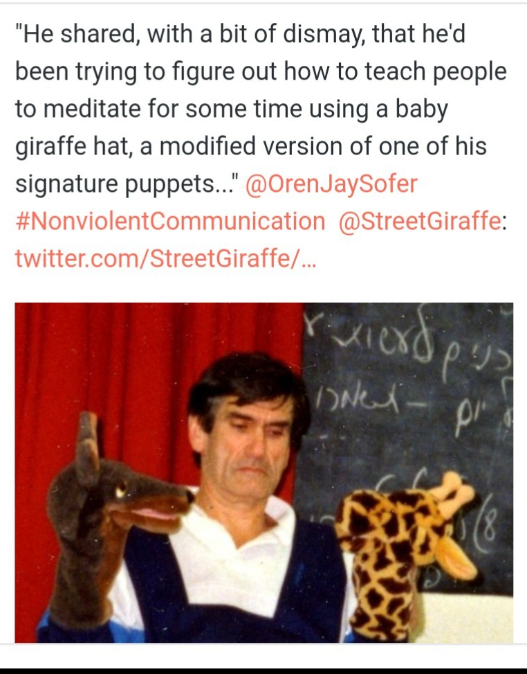 Our monthly NVC sangha, a free ‘dialogue lab’ (skill-building) tele-practice group w/ iGiraffe has an affiliated Street Giraffes blog — which also serves as a cache of heuristic materials for further, self-discovered, self-appropriated exploration. The intention of both the blog and group format is to blend complementary modalities, such as interweaving Focusing & Mindfulness, towards the end of each having an opportunity to carve out their own, individuated path (as an NVC practitioner).